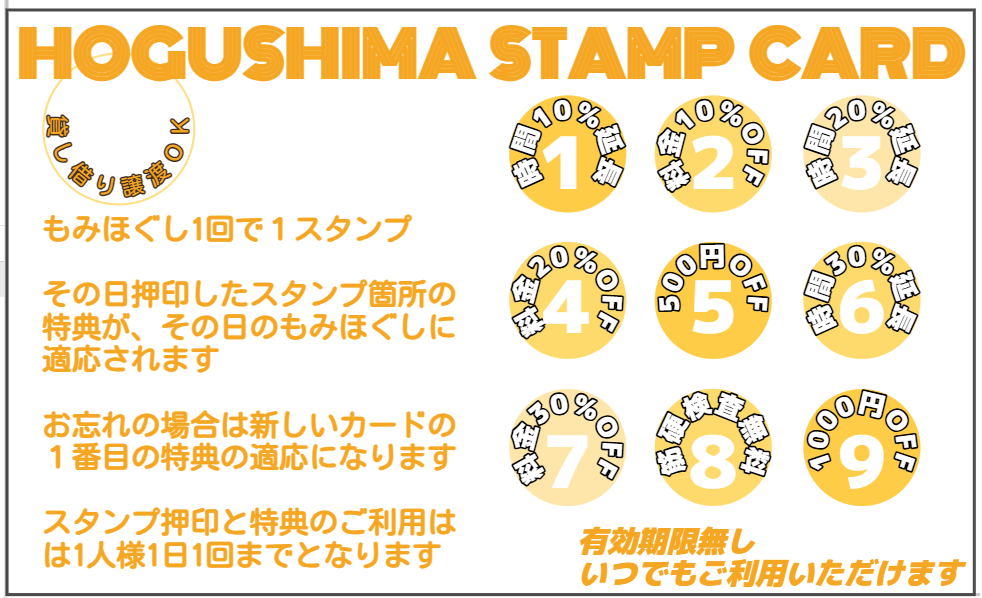 下記のスタンプカードを活用することでお得に施術することができます。
